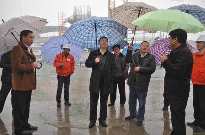 2015年1月6日,岳陽市副市長陳恢清、岳陽樓區(qū)區(qū)委書記秧勵(lì)一行在大岳高速洞庭湖大橋建設(shè)開發(fā)有限公司總經(jīng)理梁振西的陪同下,冒著寒冬細(xì)雨來到大橋A1標(biāo)項(xiàng)目視察?!?