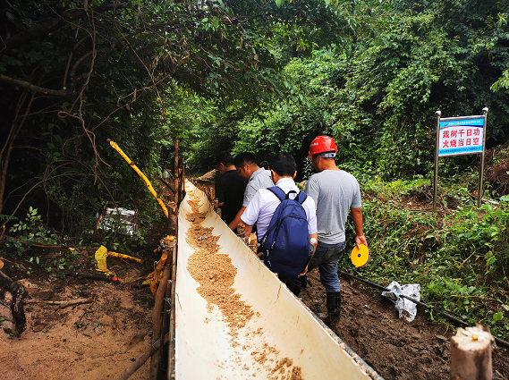 如今,從山頂往下300米長的溜槽成為項(xiàng)目一道特殊的風(fēng)景線。