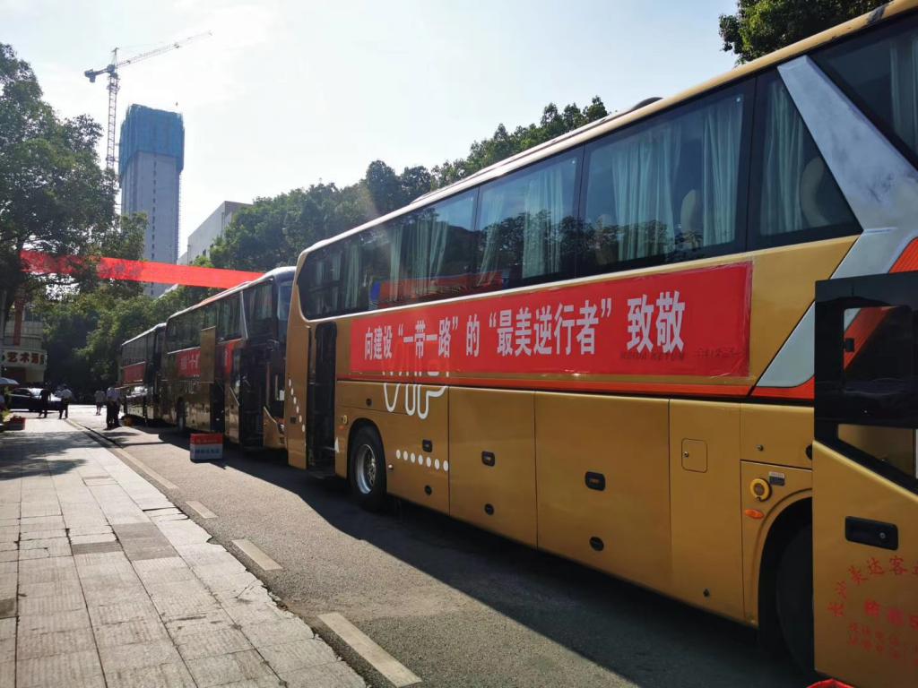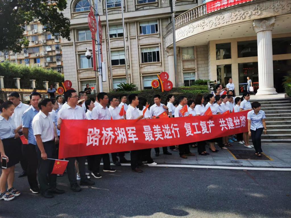 出征儀式上,湖南交水建集團(tuán)領(lǐng)導(dǎo)向赴格團(tuán)組領(lǐng)隊(duì)授 " 赴格魯吉亞復(fù)工復(fù)產(chǎn)先鋒隊(duì) " 隊(duì)旗,省國(guó)資委、湖南交水建集團(tuán)和湖南路橋集團(tuán)相關(guān)領(lǐng)導(dǎo)對(duì)團(tuán)組成員進(jìn)行慰問(wèn),贈(zèng)送防疫愛(ài)心禮包,歡送這群為國(guó)際工程履約、奔赴海外的 " 最美逆行者 "。