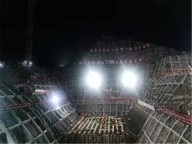 6月16日午夜,在首件澆筑進(jìn)行到第13個(gè)小時(shí),突然有一臺(tái)輸送泵油管爆裂,澆筑量減半,質(zhì)量控制難度大大增加。禍不單行,這時(shí),另外一臺(tái)輸送泵堵管,好在此時(shí)澆筑已接近尾聲,項(xiàng)目也提早制定了應(yīng)對(duì)堵管的預(yù)案,現(xiàn)場(chǎng)工作人員立馬進(jìn)行清洗,一個(gè)小時(shí)候恢復(fù)澆筑,保證了首件澆筑完成。